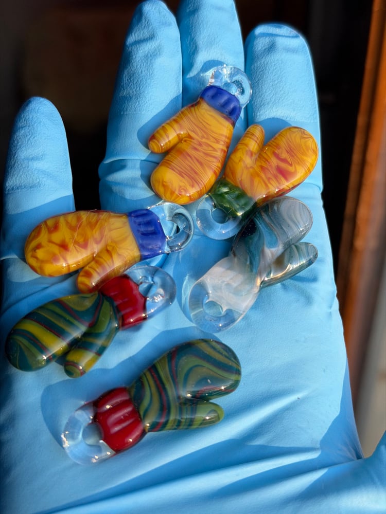 A cozy little mitten in a small wearable or charm-friendly size. Comes with a jump ring and a keychain split ring for you can have both. Pick your color combo!